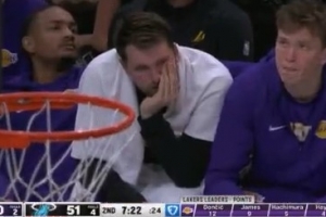 GIF-东契奇替补席托着下巴一脸疲惫