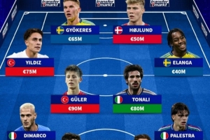 中场:伊尔迪兹(土耳其,7500万)、居莱尔(土耳其,9000万)、托纳利(意大利,8000万)、伊兰加(瑞典,4000万)