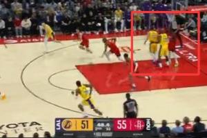 GIF-东契奇认为自己被犯规,和詹姆斯同时看向裁判没有回防,杜兰特已经下快攻了!